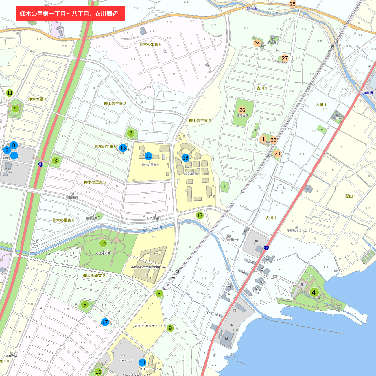 仰木の里学区の名所、史跡、遺跡、公園、学校、公共施設をご紹介します。